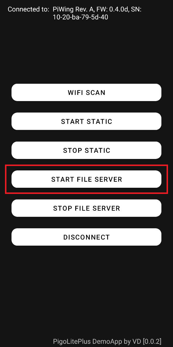 1. Нажмите кнопку Start File Server на главном экране приложения.