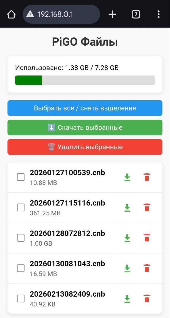 Для доступа к записанным файлам используйте встроенный файловый сервер приёмника.