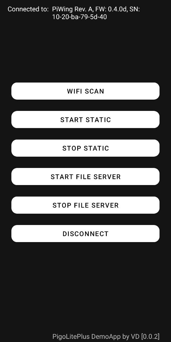 3. После успешного подключения к приёмнику на экране отобразится панель управления с кнопками режимов.