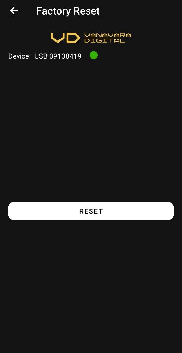 В разделе "Factory Reset" вам доступна функция сброса устройства к его изначальным заводским настройкам, путем нажатия на кнопку "reset".