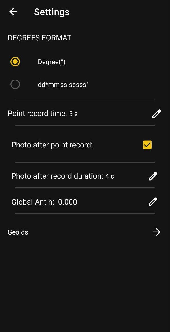 7. Настройка формата: Возможность выбора формата градусов координат.
