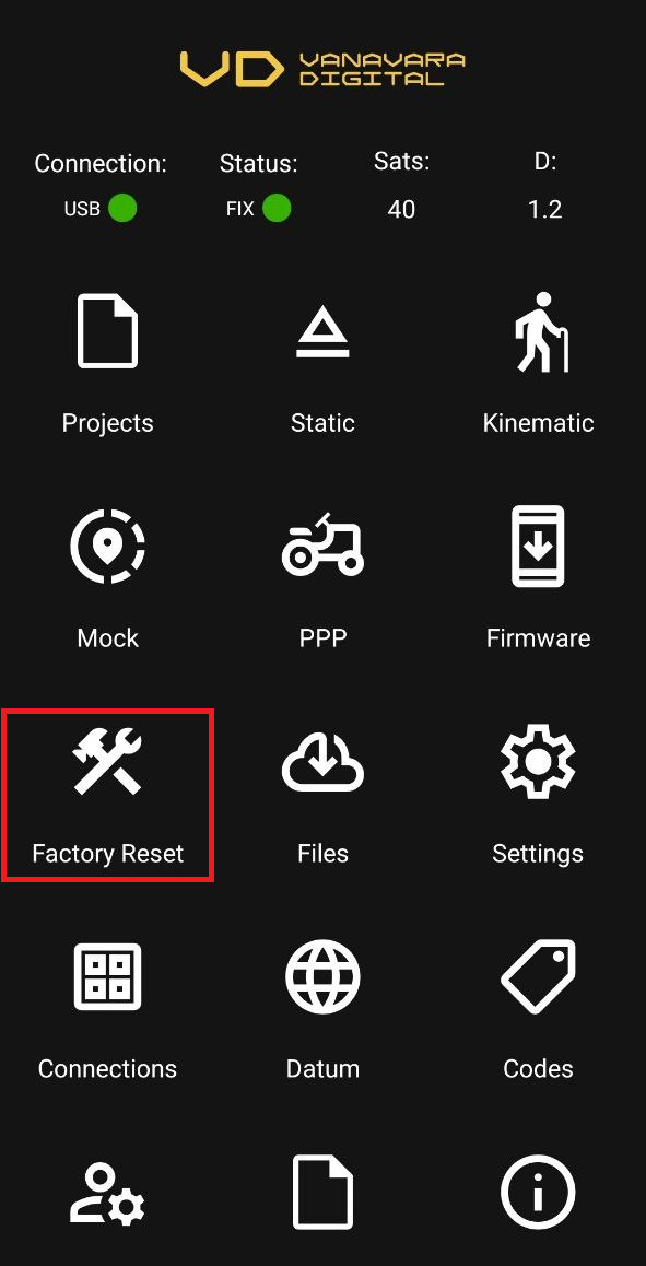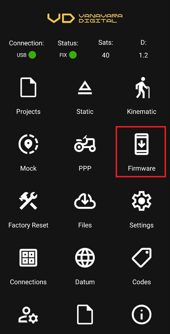 В режиме кинематики приложение записывает спутниковые измерения, при этом приемник может находиться в движении. Полученный файл может быть использован в последующей обработке методом PPK. Как работать в этом режиме читайте в статье "Режим Kinematic".
