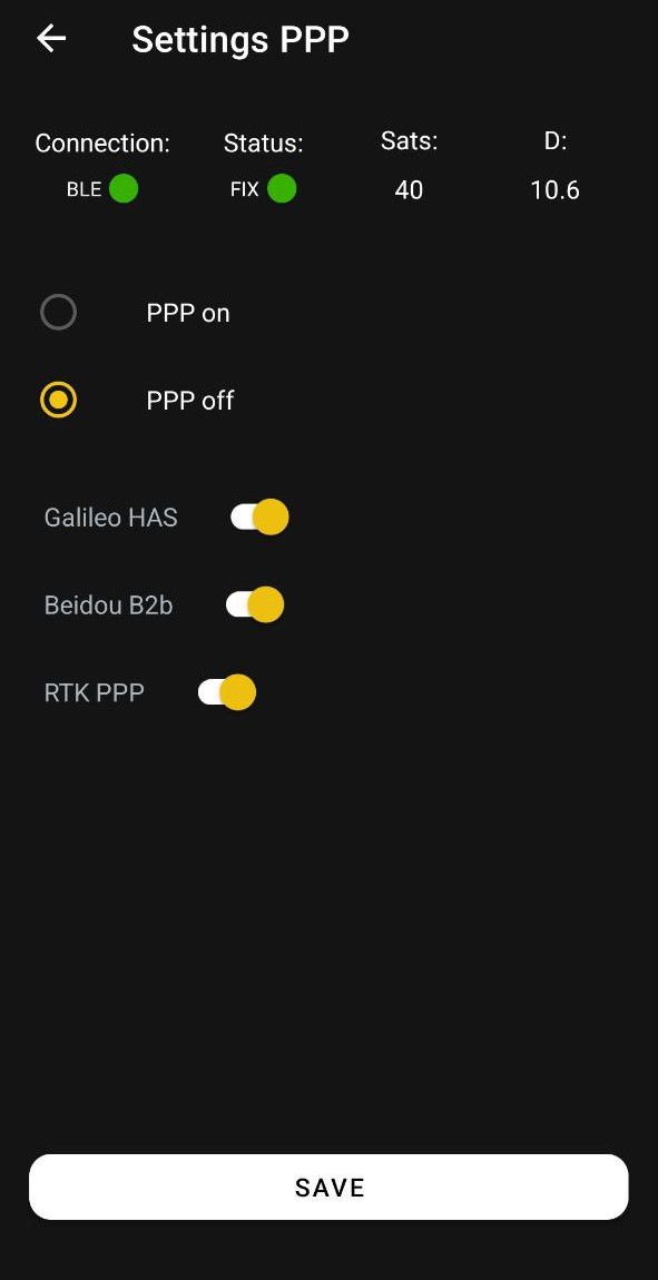 5. Настройка режима РРР: Возможность включать и выключать режим РРР и выбирать поставщика поправок: Galileo HAS или Beidou B2b.