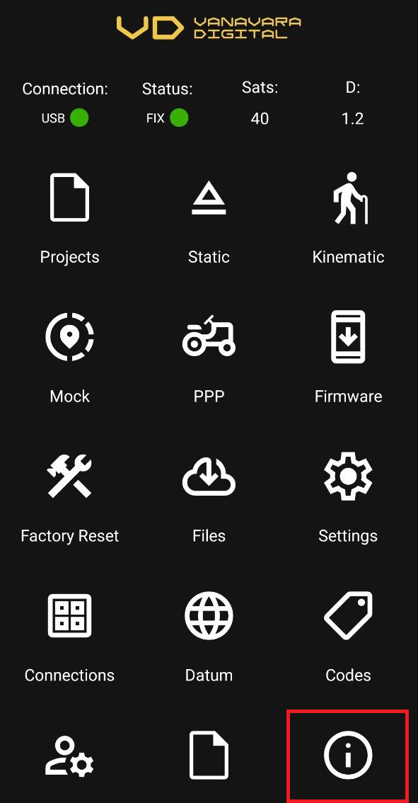 В режиме кинематики приложение записывает спутниковые измерения, при этом приемник может находиться в движении. Полученный файл может быть использован в последующей обработке методом PPK. Как работать в этом режиме читайте в статье "Режим Kinematic".