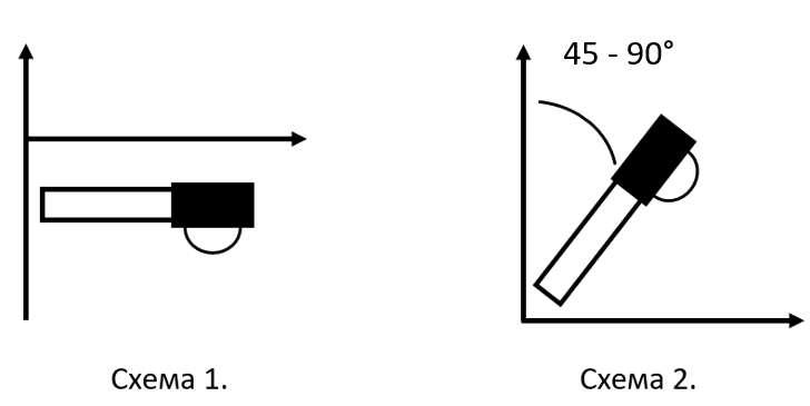 Схема 2 — положение сканера при съёмке вертикальных объектов. Высота объектов до 15 метров.