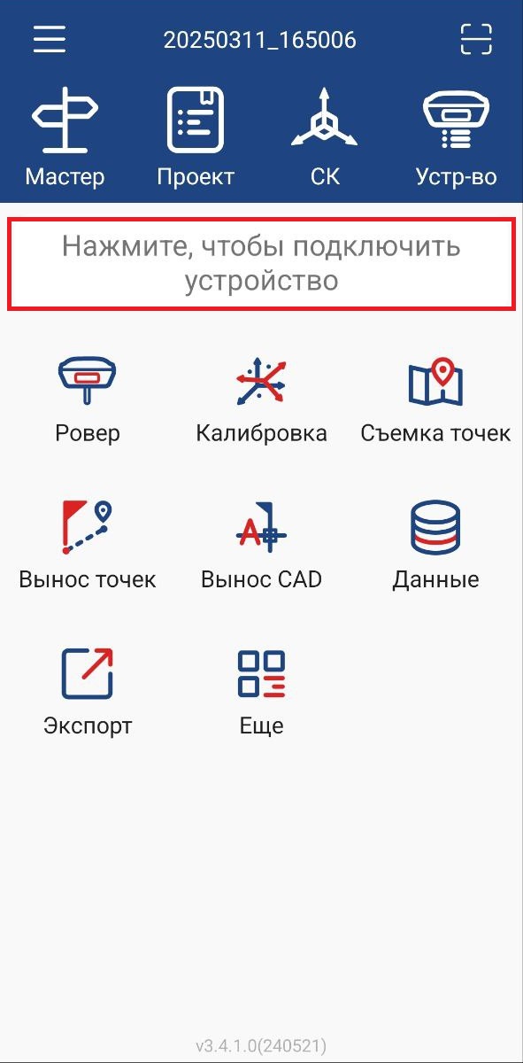 Установите связь между PiGO Lite и программой 7Star через Bluetooth (BLE). Для этого, нажмите на поле «Нажмите, чтобы подключить приёмник». Далее перейдите в раздел поиска устройств и выберите нужный приемник для подключения.