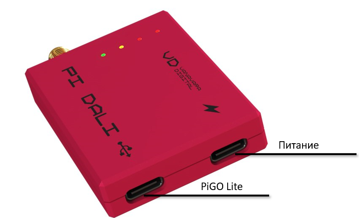 4. Отключите питание у PiGO Lite и соедините устройства PiDali и PiGO Lite с помощью кабеля Type-C. При этом подключите PiGO Lite к левому порту, а правый порт используйте для подключения питания.